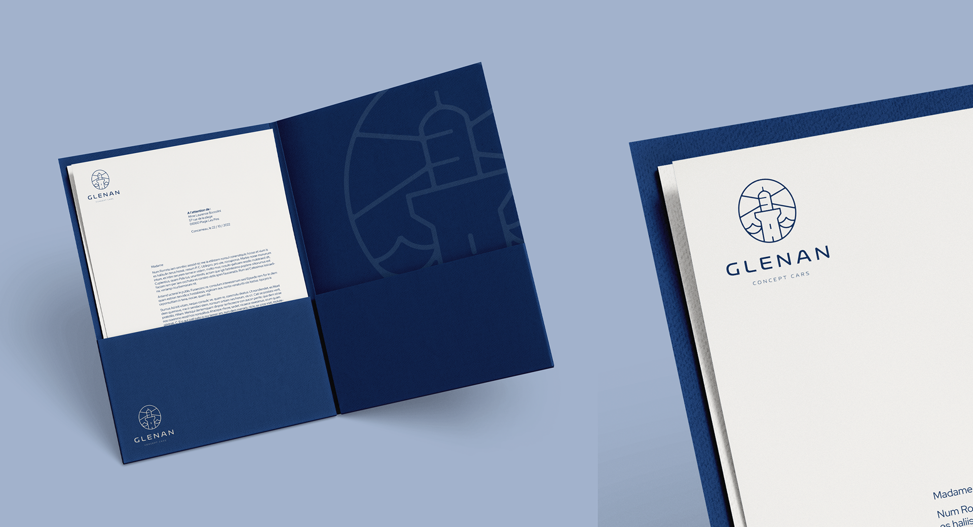 Glenan Concept Cars est une marque Concarnoise qui fabrique des Vans aménagés sur la base du Renault Trafic. Créé en 2002 et reprise en 2019 par Franck Guilbaud, la société fête ses 20 ans en 2022. Pour célébrer cet anniversaire, Franck souhaitait retravailler sa marque de fond en comble. Nouvelle plateforme de marque, nouveau logotype, nouvelle identité graphique, nouveau site... En terme de design, il me semblait important de consolider l'ancrage territorial de la marque en mettant plus en avant le mot GLENAN et en reprenant le véritable phare de Penfret pour en faire le symbol officiel. Je voulais aussi un design plus intemporelle, plus iconique avec une certaine élégance, des courbes douces et beaucoup de personnalité. Comme le produit est fabriqué de façon artisanale au sens noble du terme, je souhaitais que la perception de Glénan Concept Cars soit clairement premium. Exit le vert flash, vive le bleu gris rappelant les fonds marins et le beige couleur du sable des plages de l'archipel de Glénan. Le tout saupoudré de Corail, par touche. Un travail de forme et de fond qui a aboutit à un Guide d'expression graphique, photographique et stylistique complet.