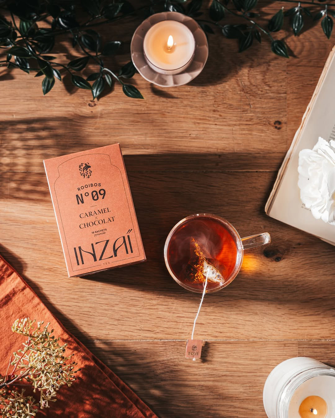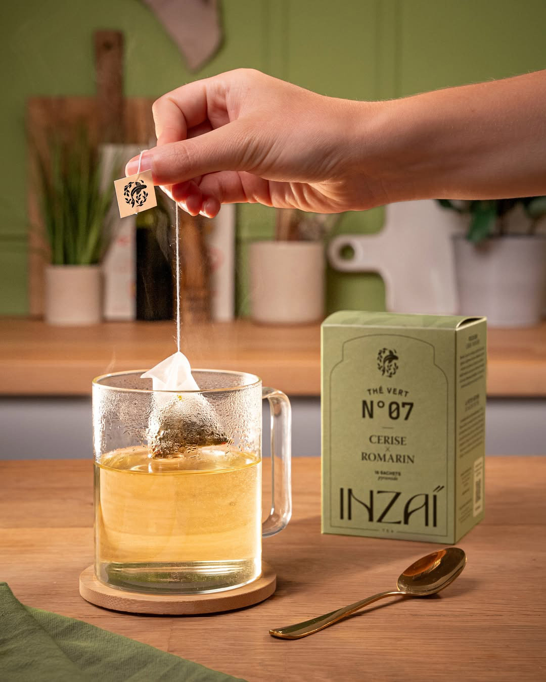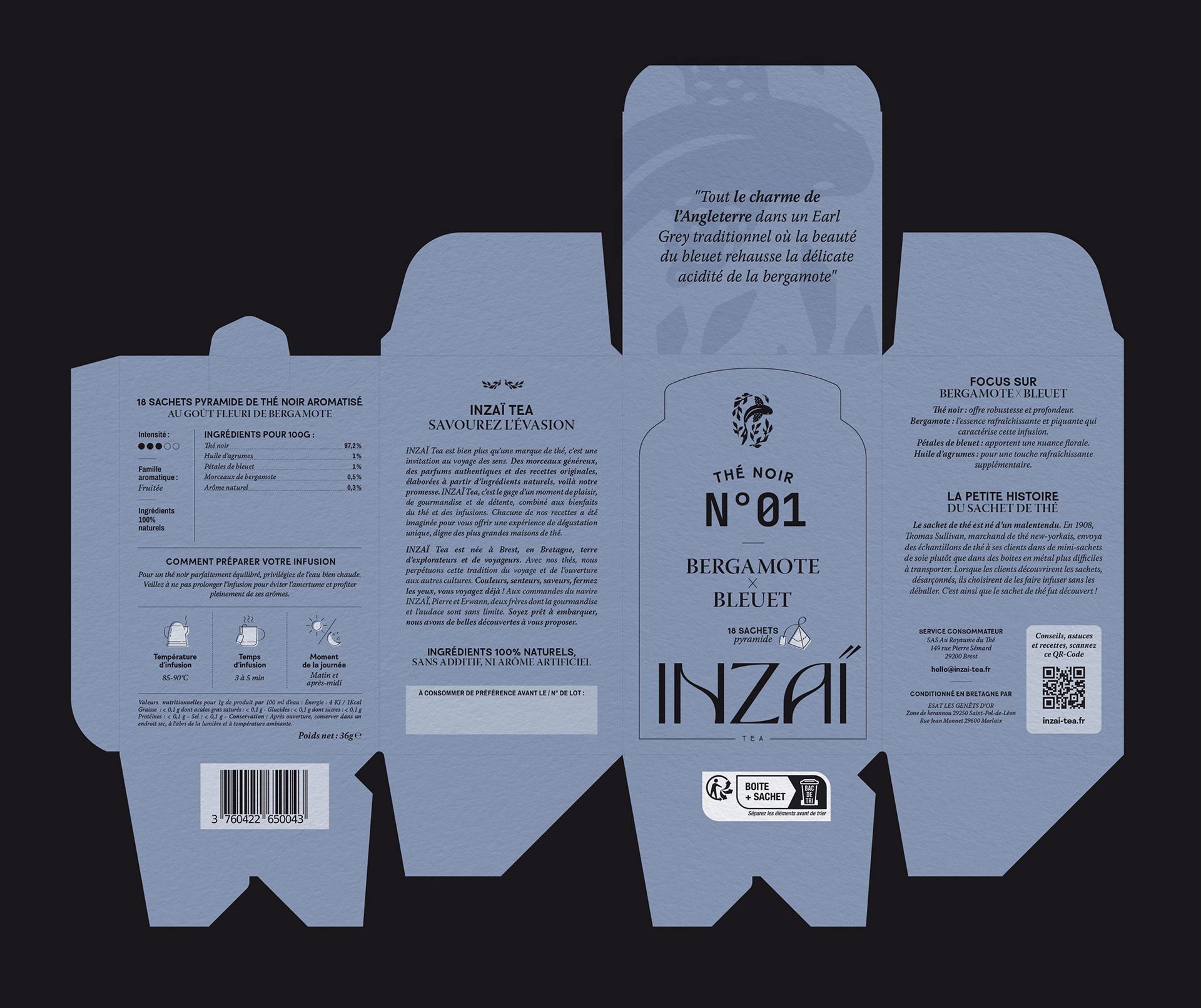 Créée à Brest par Erwann et Pierre Le Roux, aidés de Julien Sévellec au marketing, INZAÏ Tea est une marque de thé haut de gamme vendue en GMS ou sur le site de la marque. Inspirée par les voyages, les odeurs et les souvenirs d’enfance des créateurs, la marque se distingue par ses recettes ultra créatives et son positionnement ''boutique de thé''. Lancée en 2024 en format vrac, la marque développe désormais une gamme infusette pyramide pour s'ouvrir à des consommateurs moins connaisseurs en thé mais ouverts à de nouvelles expériences. Le design packaging est une déclinaison de la gamme vrac avec un direction artistique qui prend le contrepied des marques GMS dont le design est souvent surchargé en informations, illustrations, couleurs, messages. INZAÏ Tea, c'est une bulle de respiration dans le linéaire thé. Une collaboration avec Pascal Bouissou (rédaction), Anne Treutenaere (illustration) et moi même pour le branding, le packaging et le conseil. Bonne dégustation !